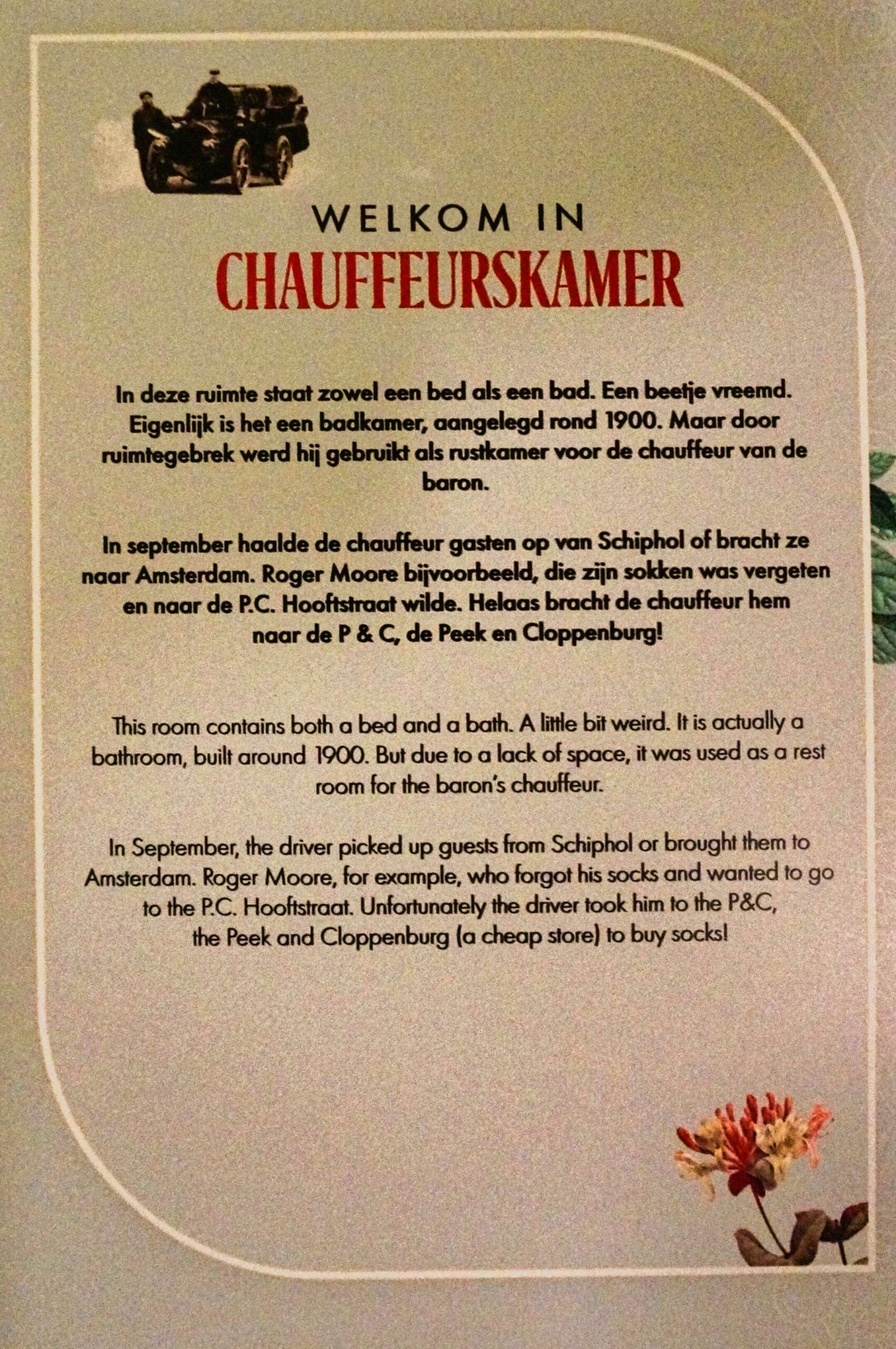 On passe par plusieurs pièces qui ont gardé leurs meubles comme à l’époque de la Baronne qui recevait beaucoup d’invités prestigieux.