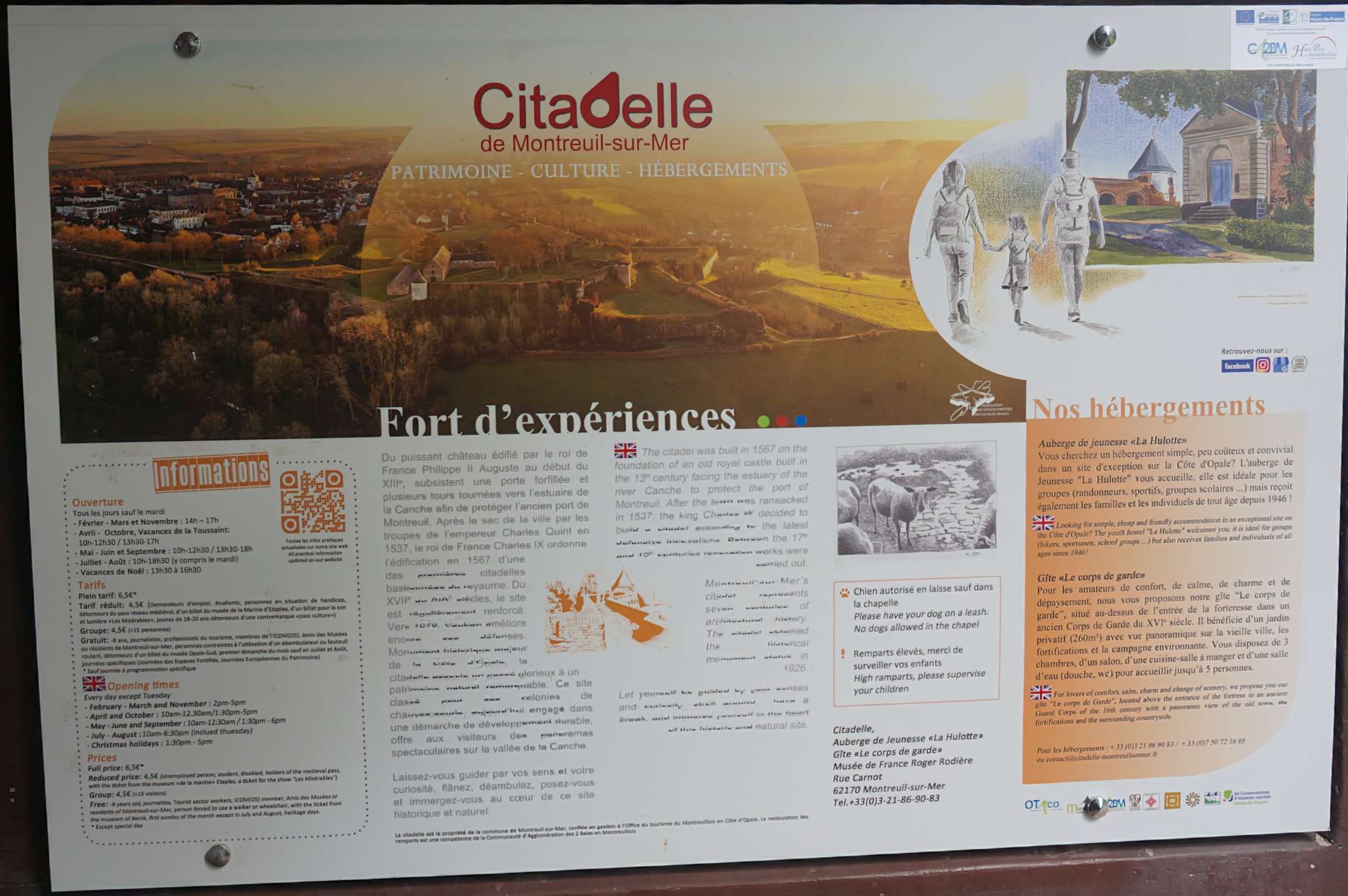 « Façonnée au fil des siècles, au gré des épisodes historiques ou de modes de construction, cette ville fortifiée renferme l’une des plus belles pages de l’histoire du Nord-Pas-de-Calais. Dominée par la citadelle et ceinturée par 3km de remparts, la ville est surnommée, à juste titre, la « Carcassonne du Nord ». »