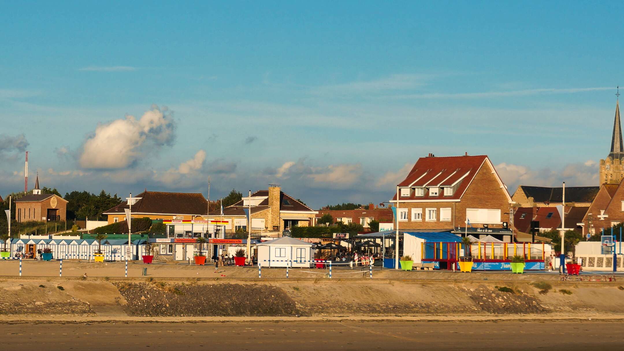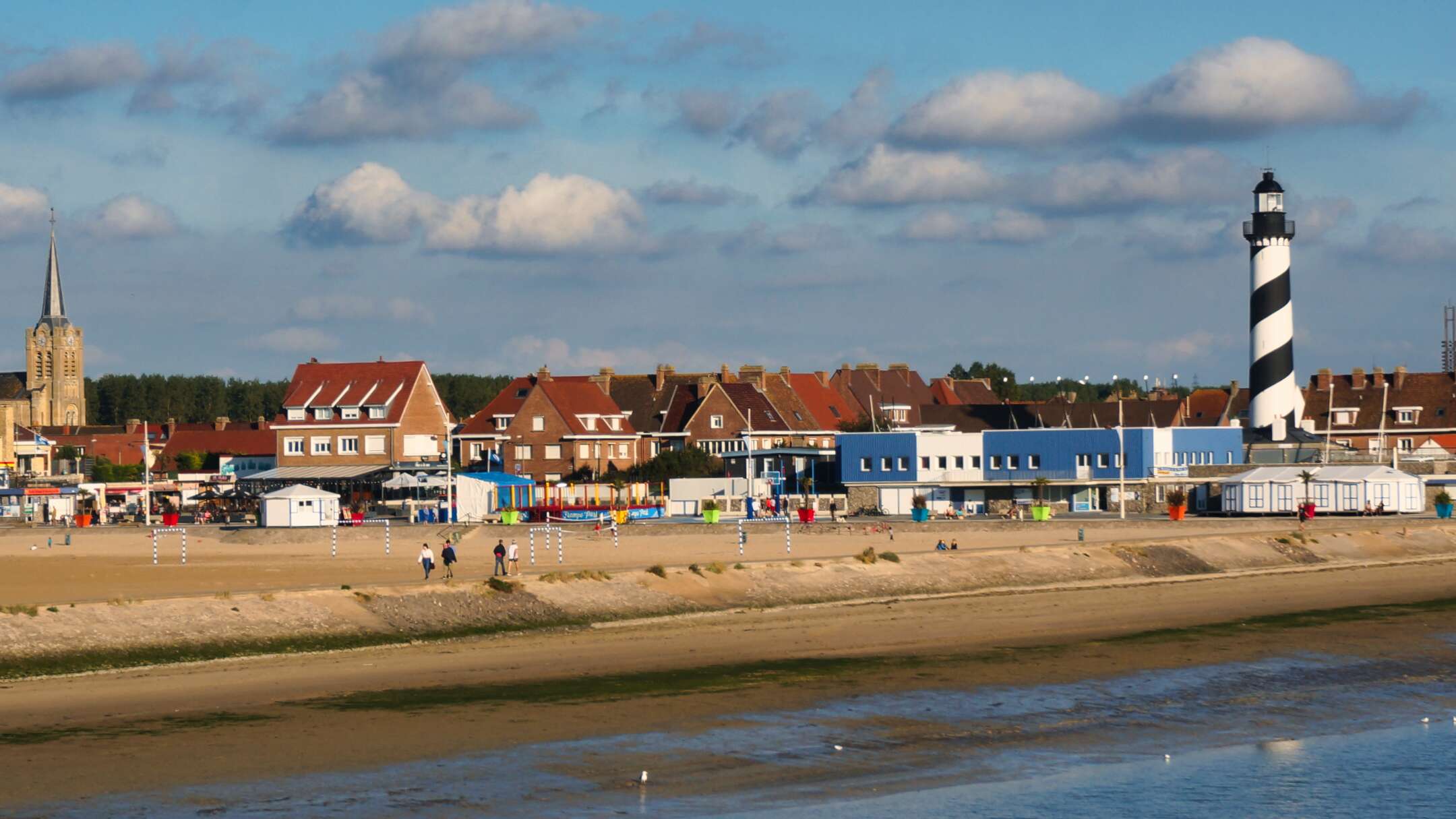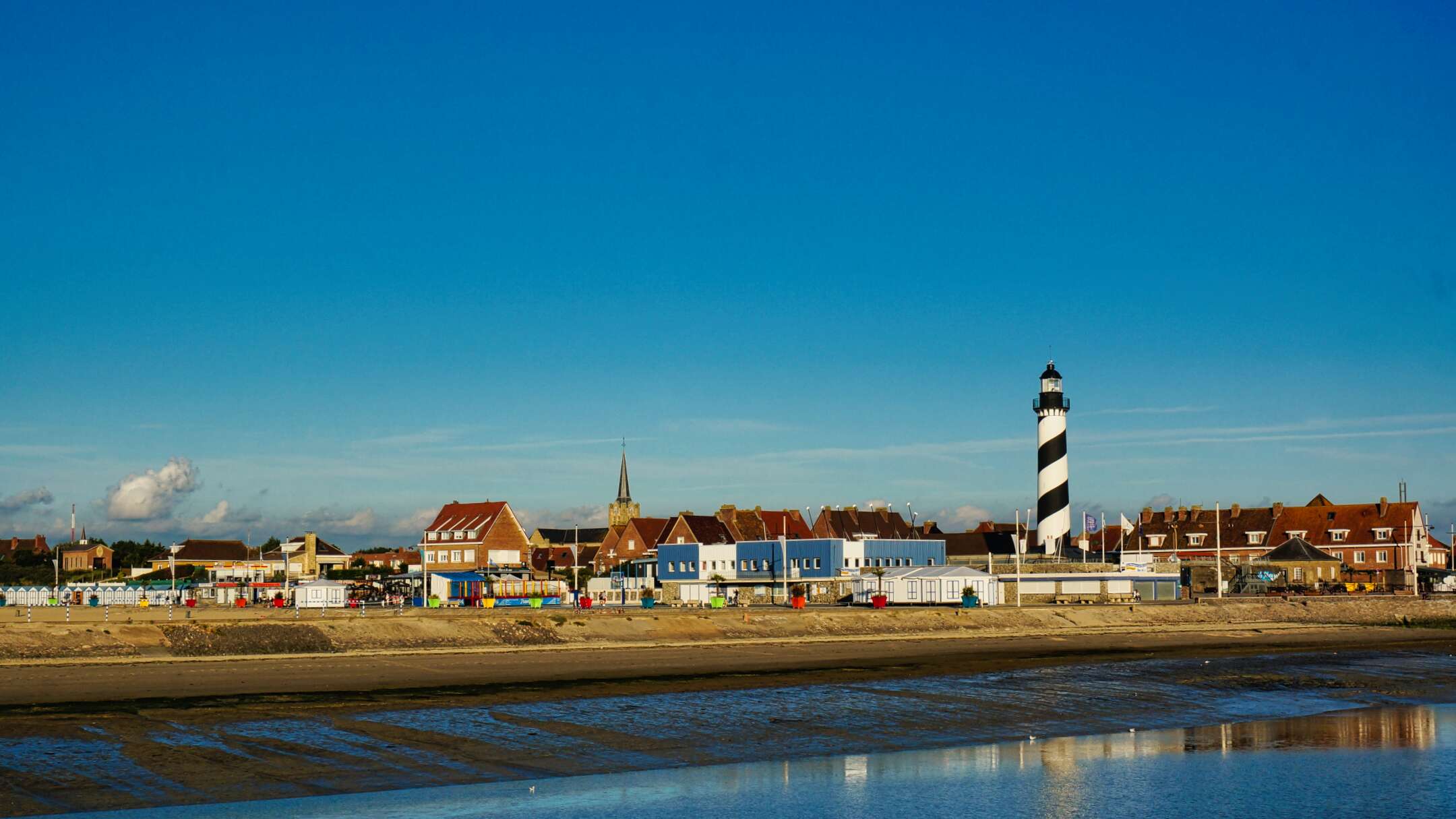 On se promène au bout, vraiment au bout de la jetée… En face il y a Gravelines, son phare noir et blanc photogénique en pleine ville et ses cabanes de plage éclairées par le soleil.