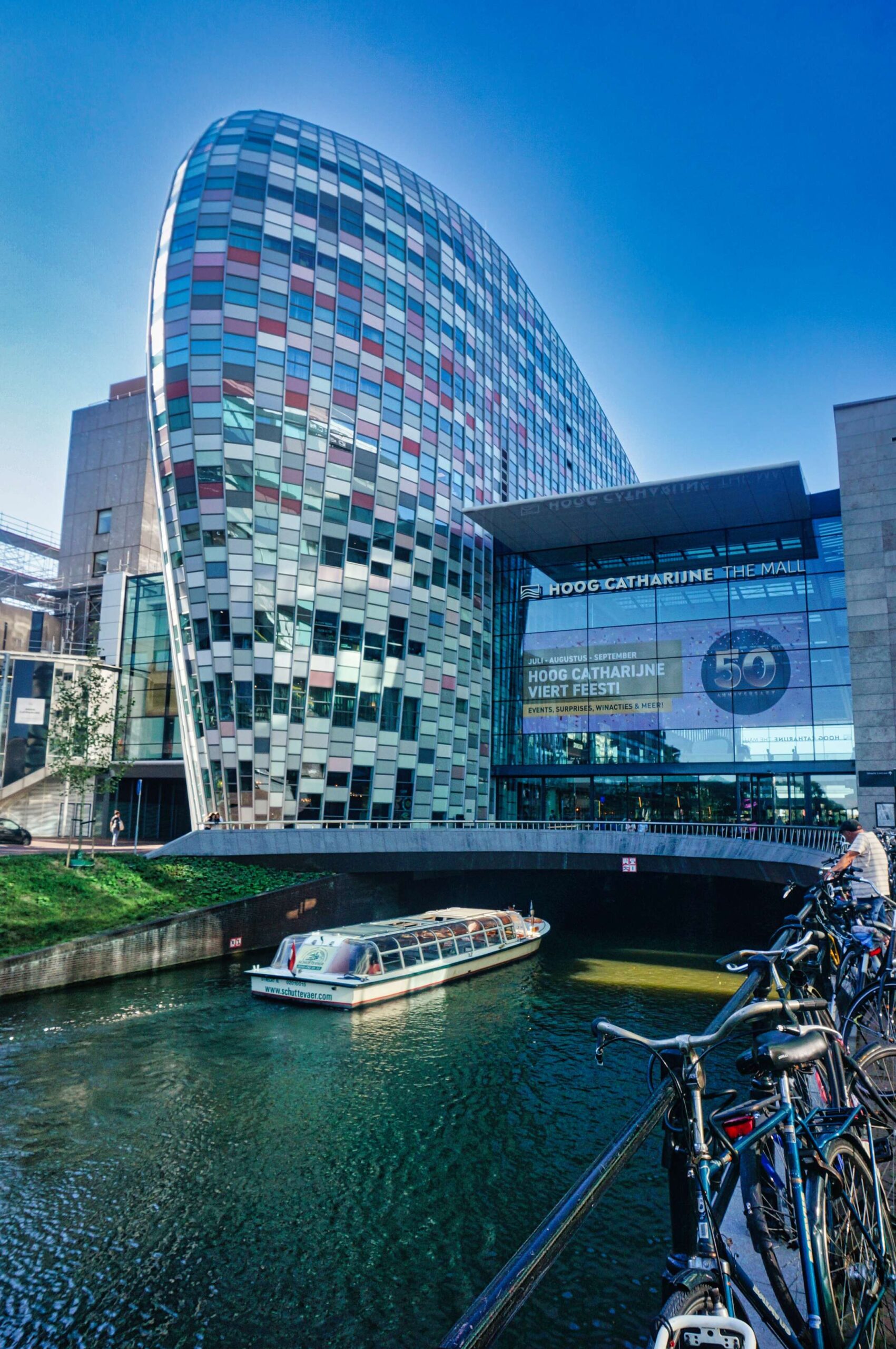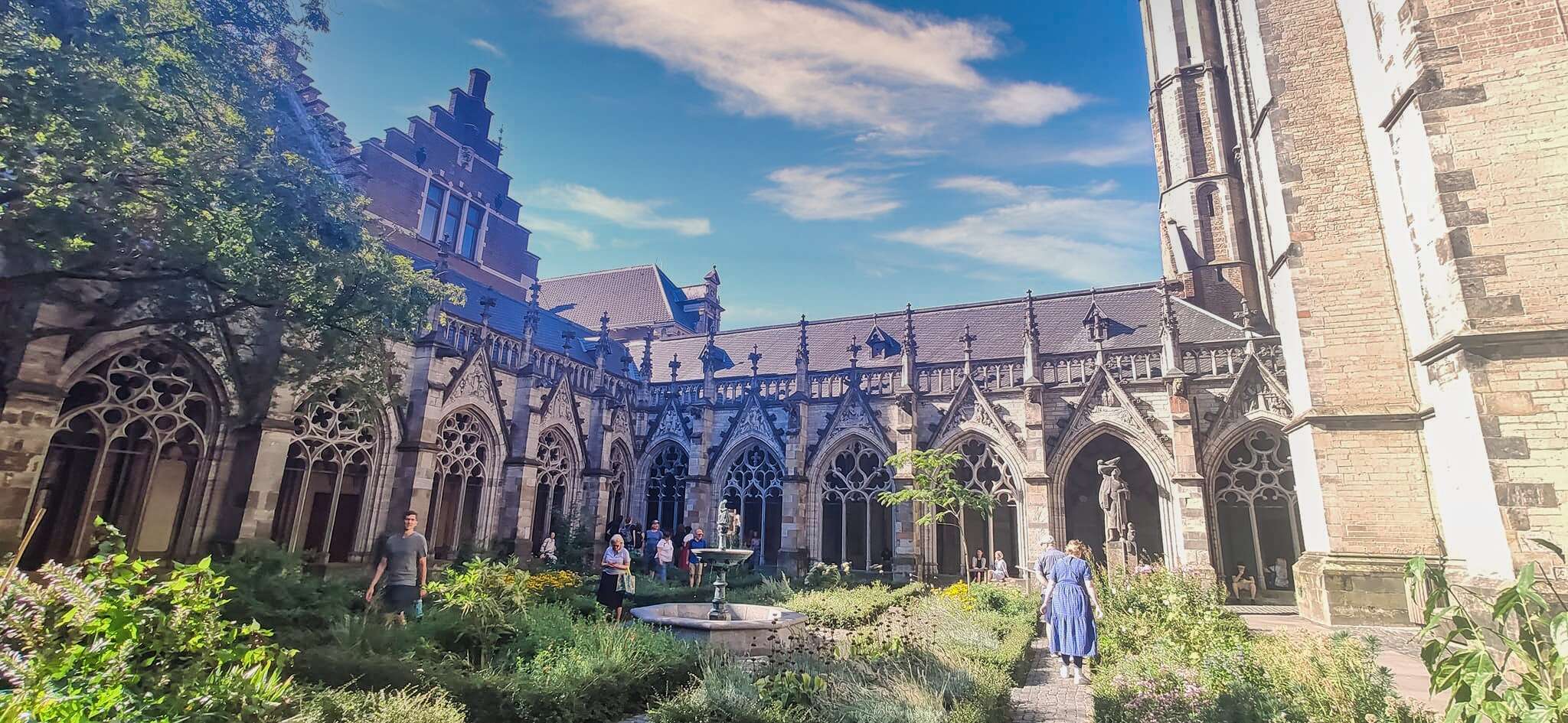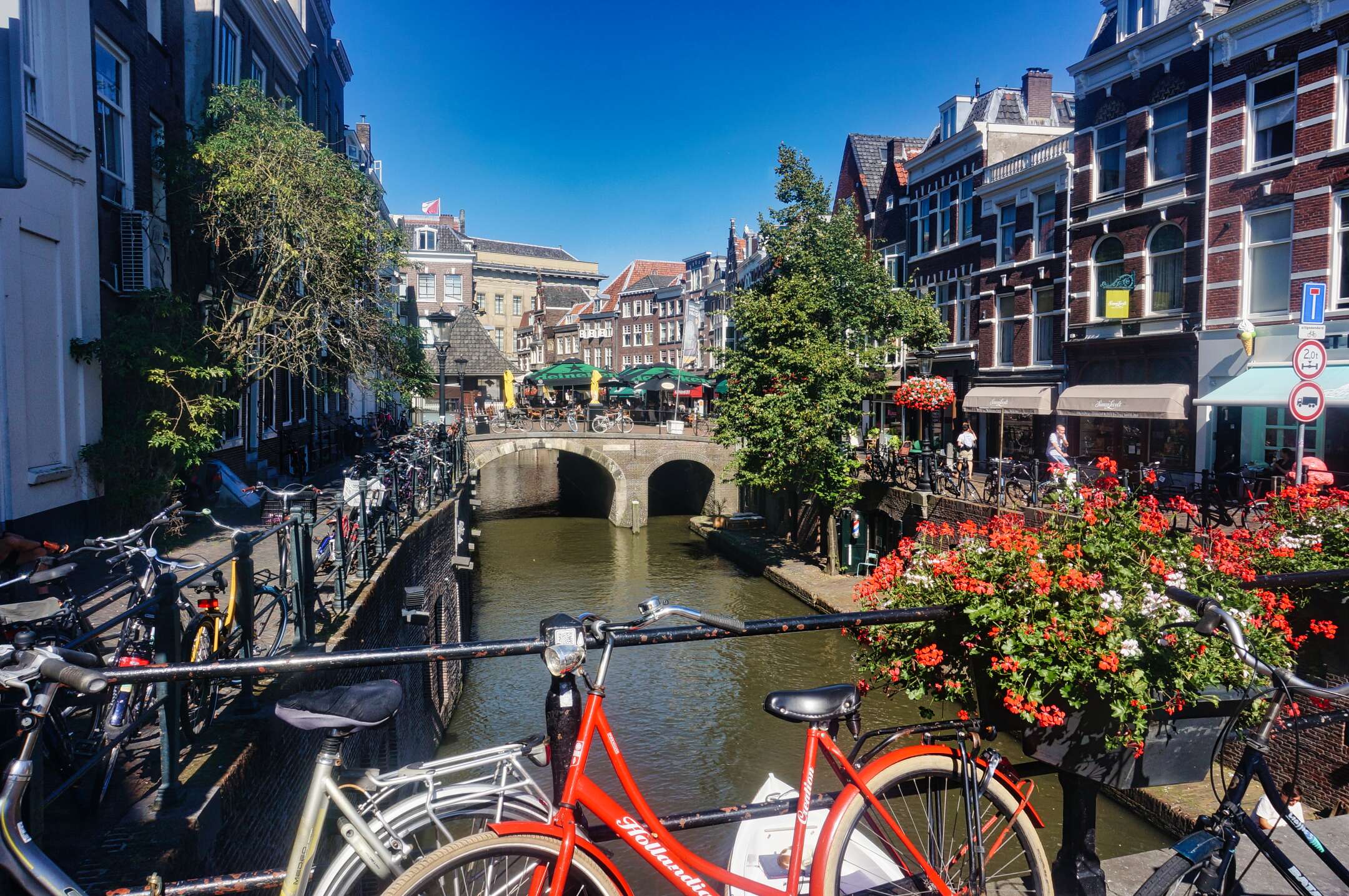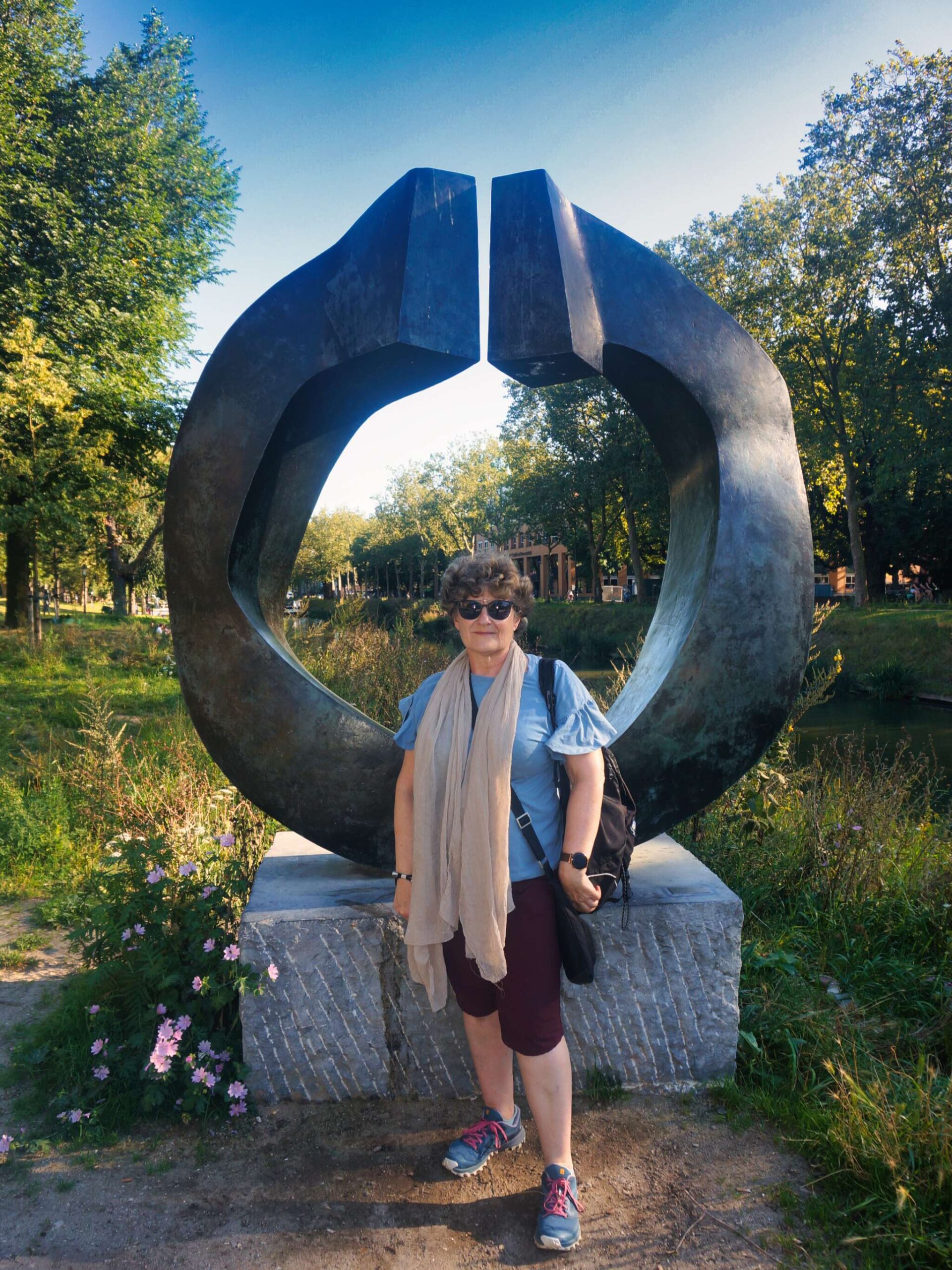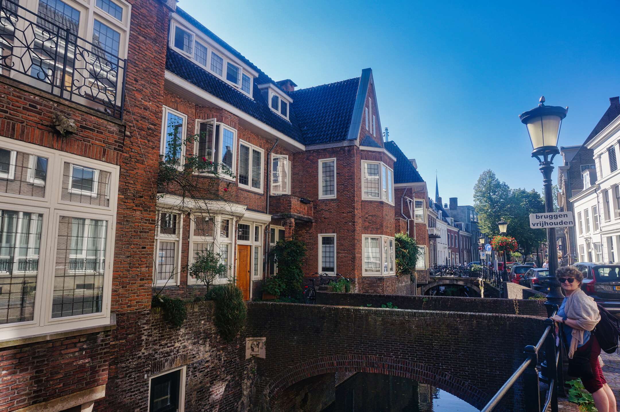 Ce matin on va au centre ville de Utretch en vélo. Elle est classée ville numéro 1 en Europe pour la beauté de ses canaux. Nous demandons un audio guide à un bateau mouche. Pas possible en français alors que sur leur pub c’est marqué Tous les bateaux dans votre propre langue. Ils sont exaspérants 15€50, on passe notre tour. D’après ce qu’on a vu sur internet le tour en bateau fait six kms qu’on peut faire à pied et on voit mieux que dans leurs trucs fermés aux plexiglas rayés comme à Amsterdam. En plus avec la chaleur, trente degrés, on ne veut pas être enfermés une heure.