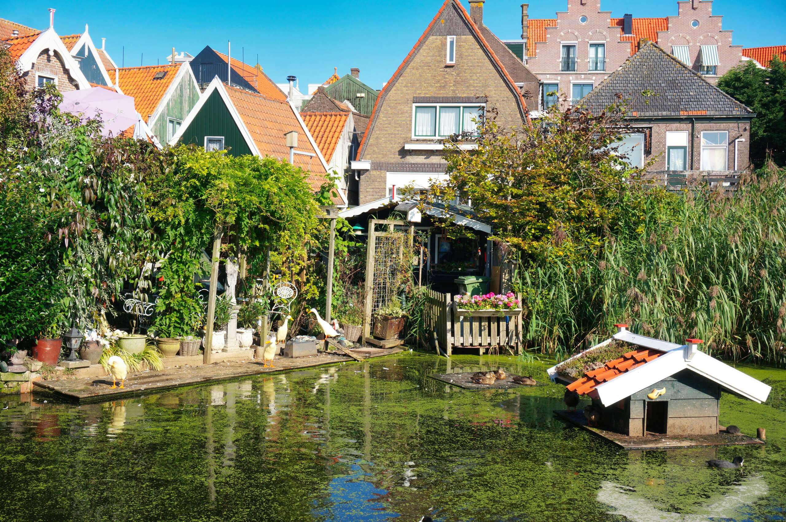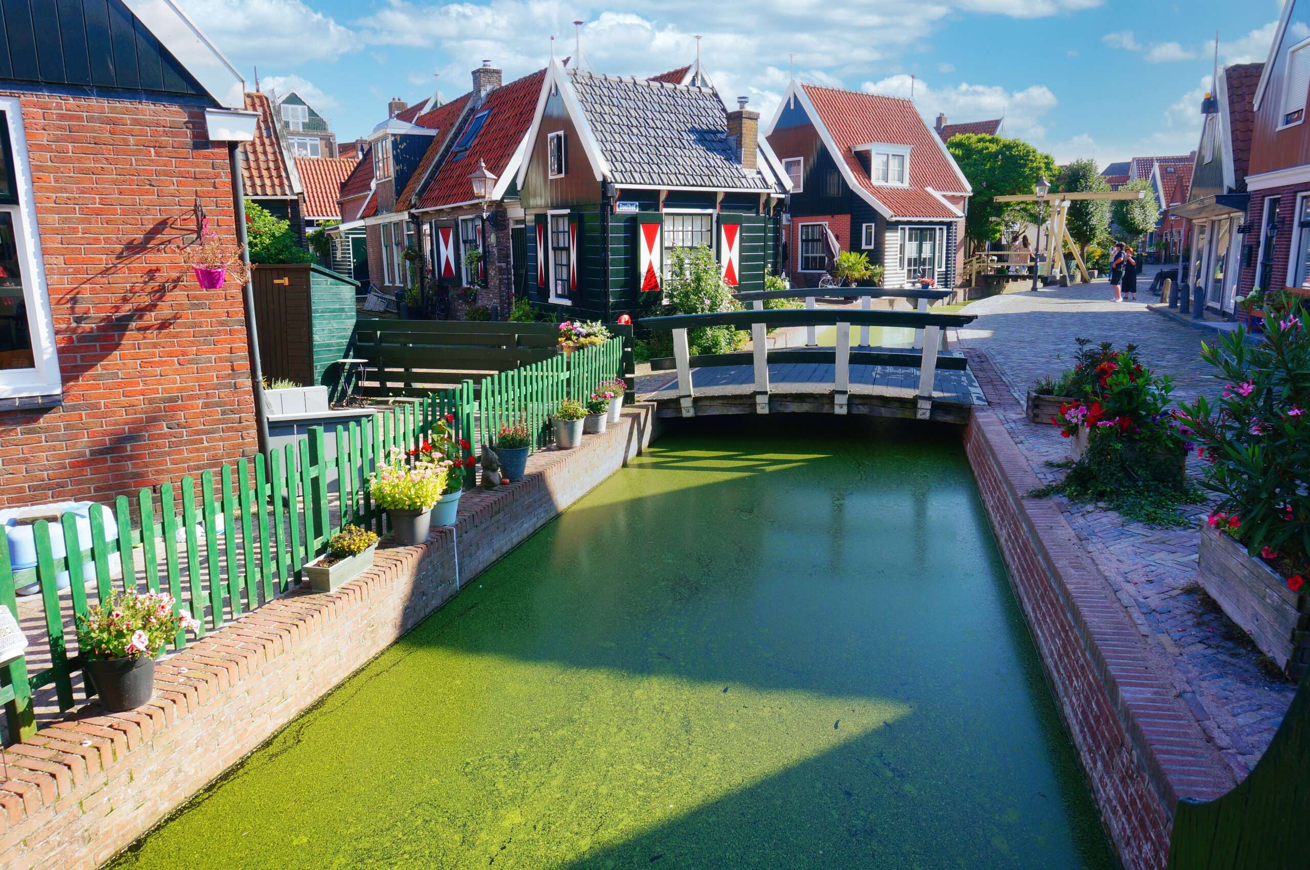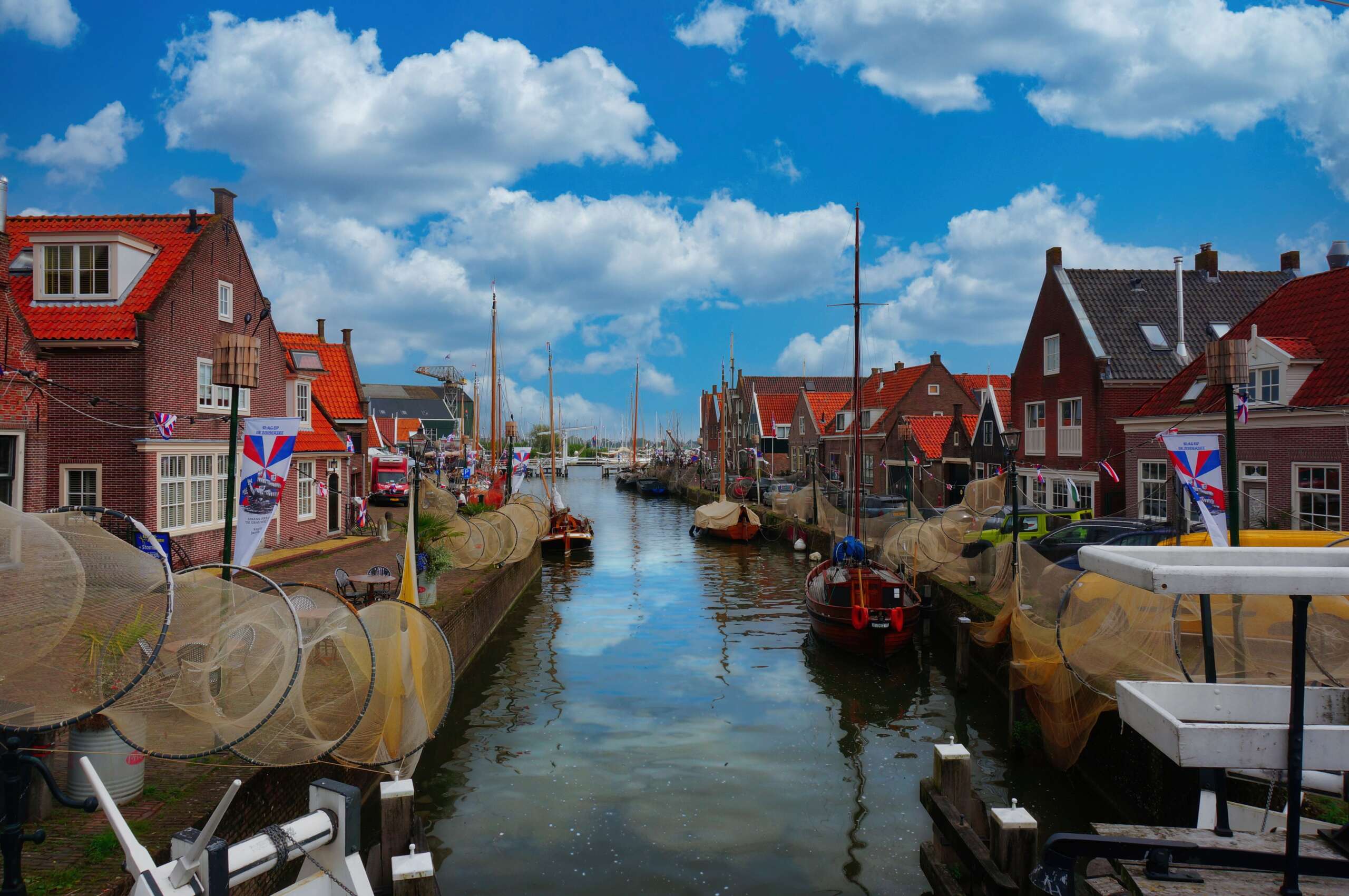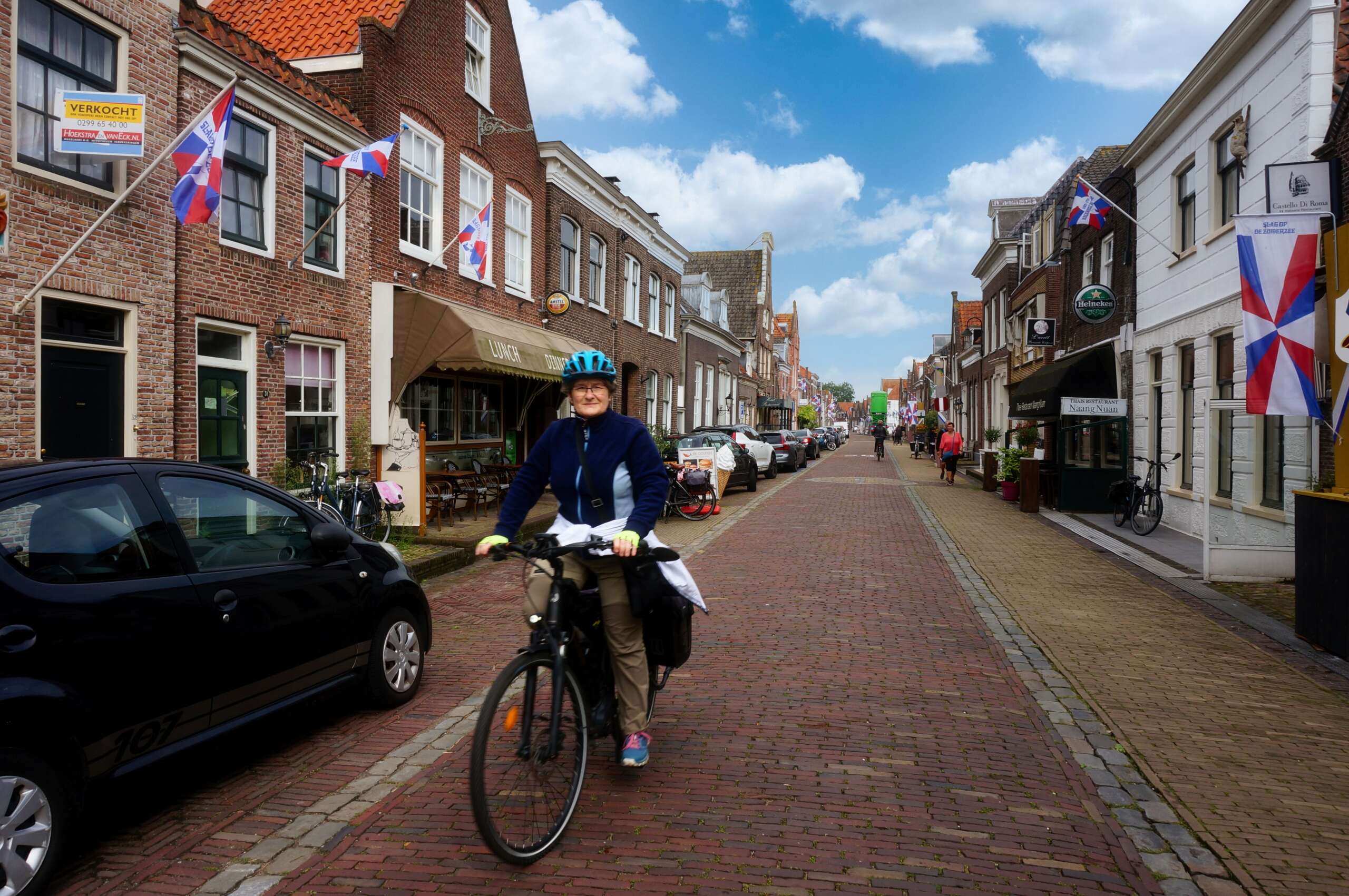 Ensuite on file voir Edam à 4.5 kms en vélo. C’est la fête en centre ville. On ne pourra pas voir correctement le centre-ville. Il y a de la musique partout à fond. C’est une jolie ville aussi. Les gens ont leur bateau amarré devant chez eux. C’est riche, très riche. On voit peu d’immeubles et ils sont assez bas. Beaucoup de diversités dans les maisons et curieusement toutes les mêmes dans différents quartiers. Ça rend bien.