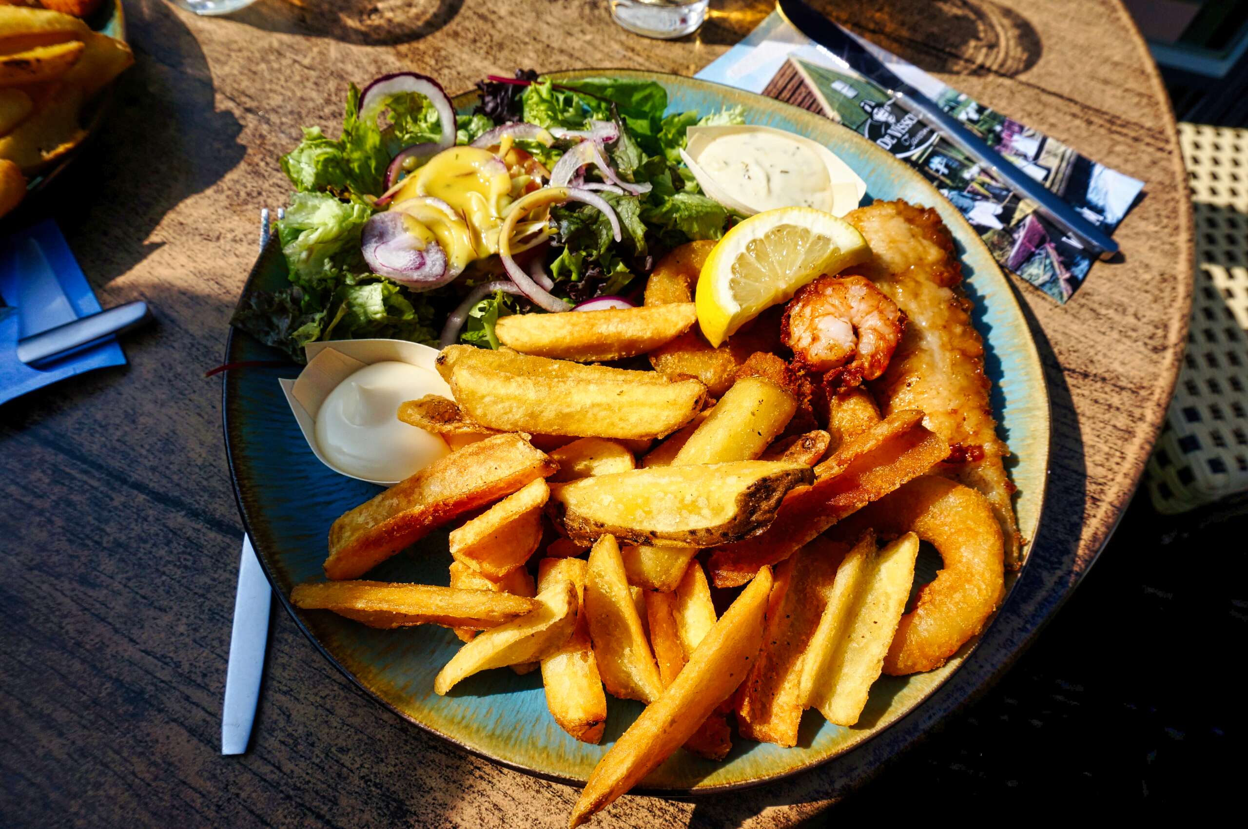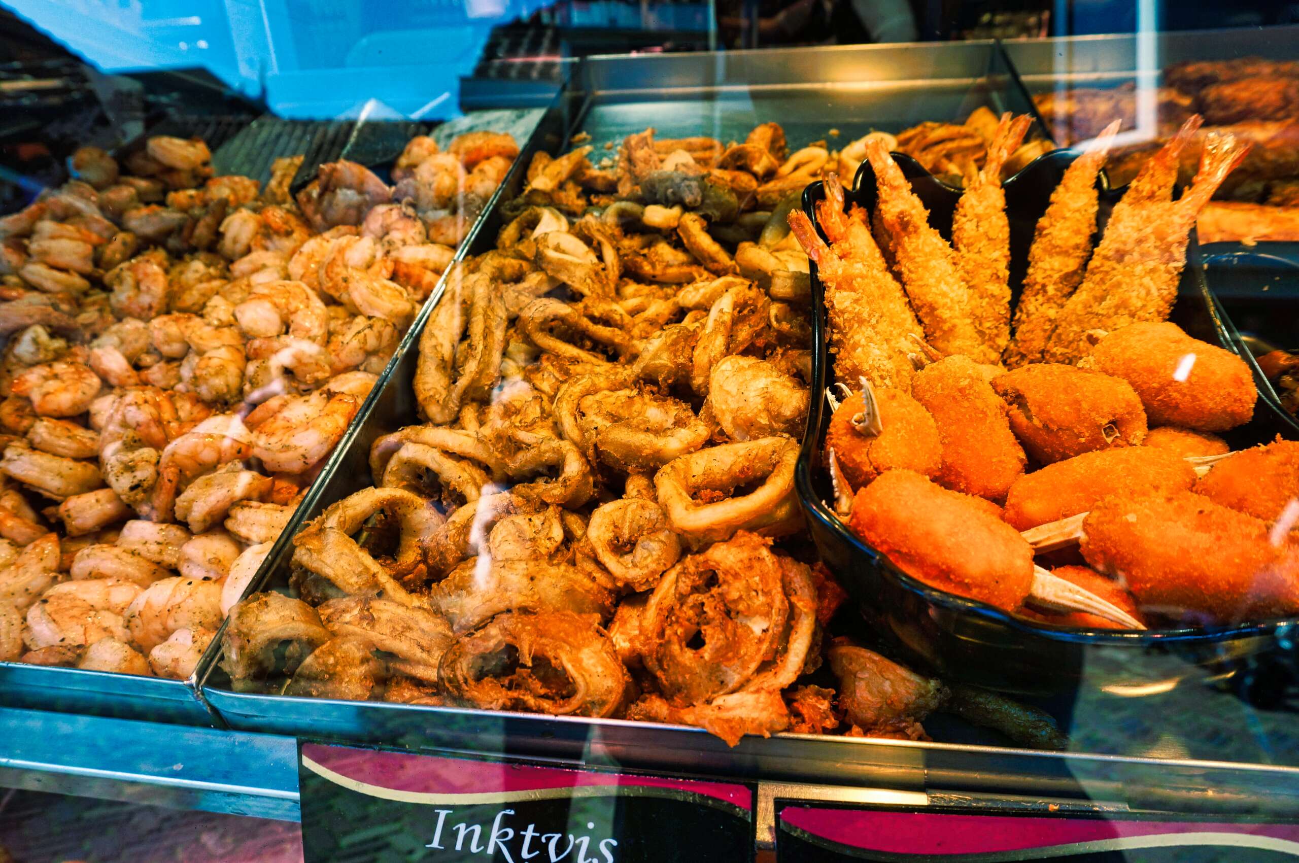 On mange un mix de poissons, gambas, moules panées, calamars, salade, frites. Excellent. Avec une Amstel pour faire passer. C’est une bière basique de chez eux je pense. Bof mais on s’habitue..