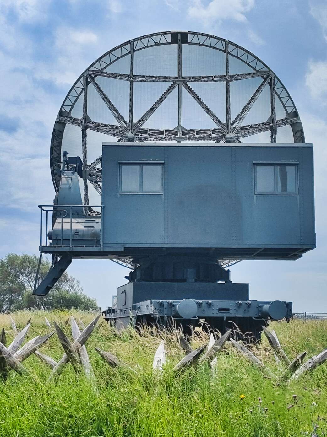 Il s’agit probablement d’une œuvre artistique ou d’un camouflage historique revisité, rappelant les techniques de dissimulation utilisées pendant la guerre. Son intégration dans le paysage de Raversyde en fait un élément intriguant du site, attirant les visiteurs par son esthétique inhabituelle.