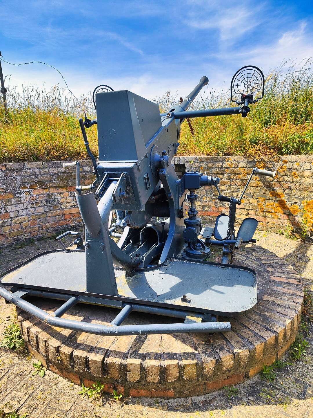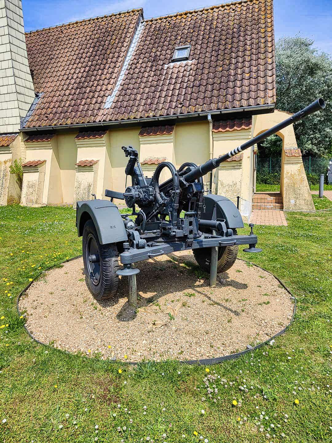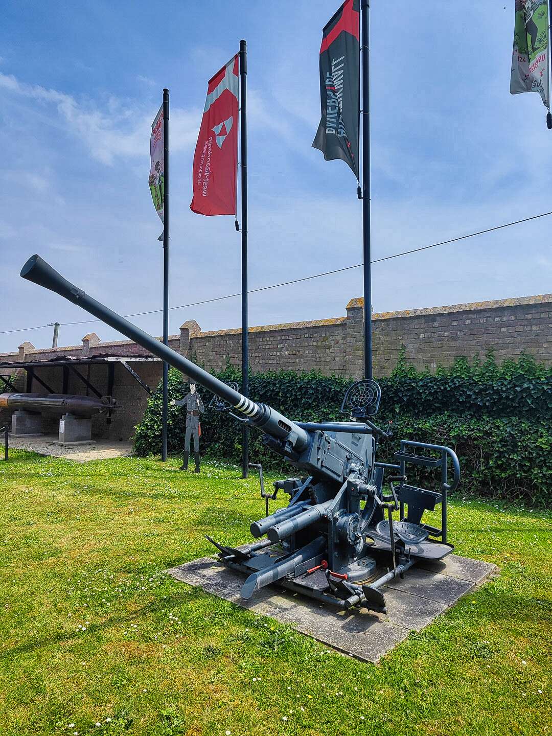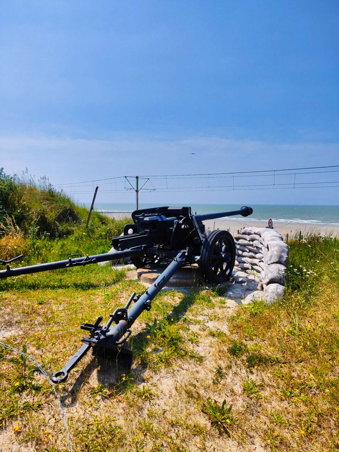 Le canon sur cette photo prise à Atlantikwall Raversyde est un Flak 38 de 3,7 cm, une pièce d’artillerie antiaérienne utilisée par l’armée allemande pendant la Seconde Guerre mondiale.