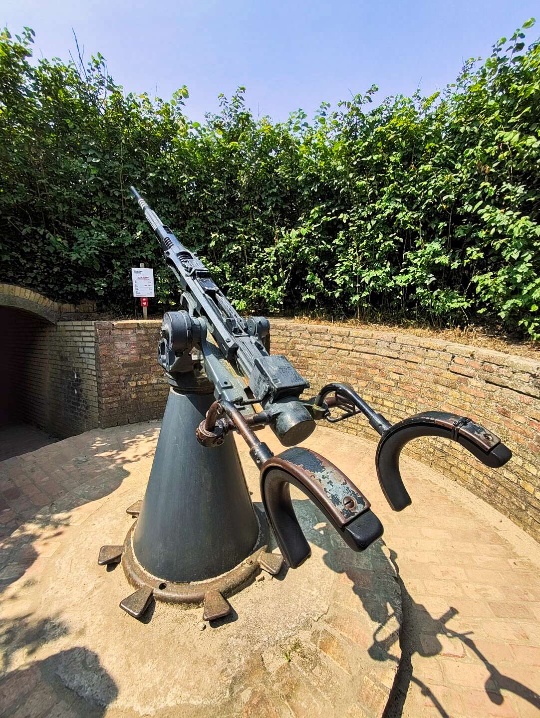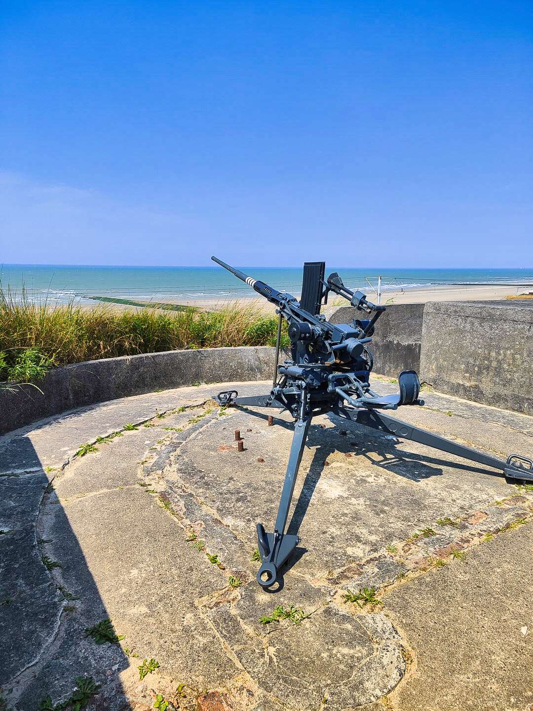 Le Flak 2 cm était largement déployé dans les bunkers et postes de défense côtiers comme ceux d’Atlantikwall Raversyde, positionné sur des plateformes bétonnées pour protéger les installations contre les avions alliés et les débarquements ennemis.