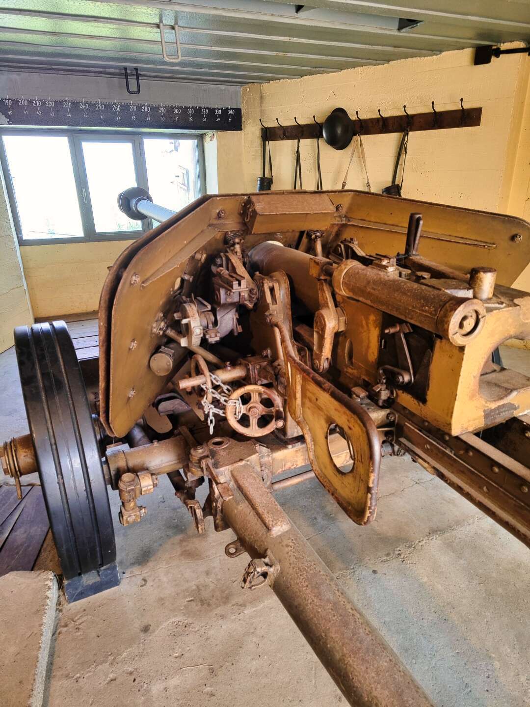 Au sommet du bunker, un télémètre de grande précision calculait les distances exactes des cibles. Ces mesures étaient transmises à la salle de calcul via un porte-voix, permettant d’ajuster les tirs avec une redoutable efficacité.